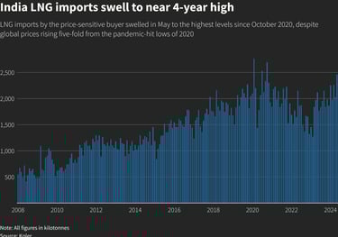 "India's LNG imports will continue to be driven higher by the power sector in at least the next two years," said Victor Vanya, director at Indian power analytics firm EMA Solutions.